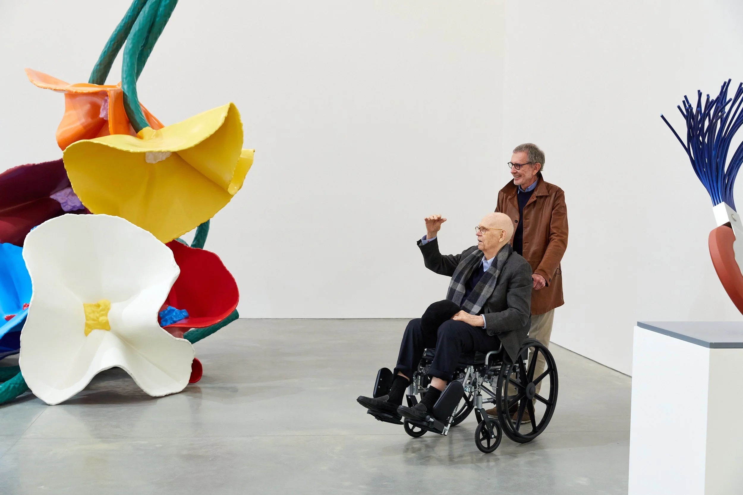 Claes Oldenburg and Arne Glimcher at Pace Gallery, New York, 2021. Courtesy Pace Gallery