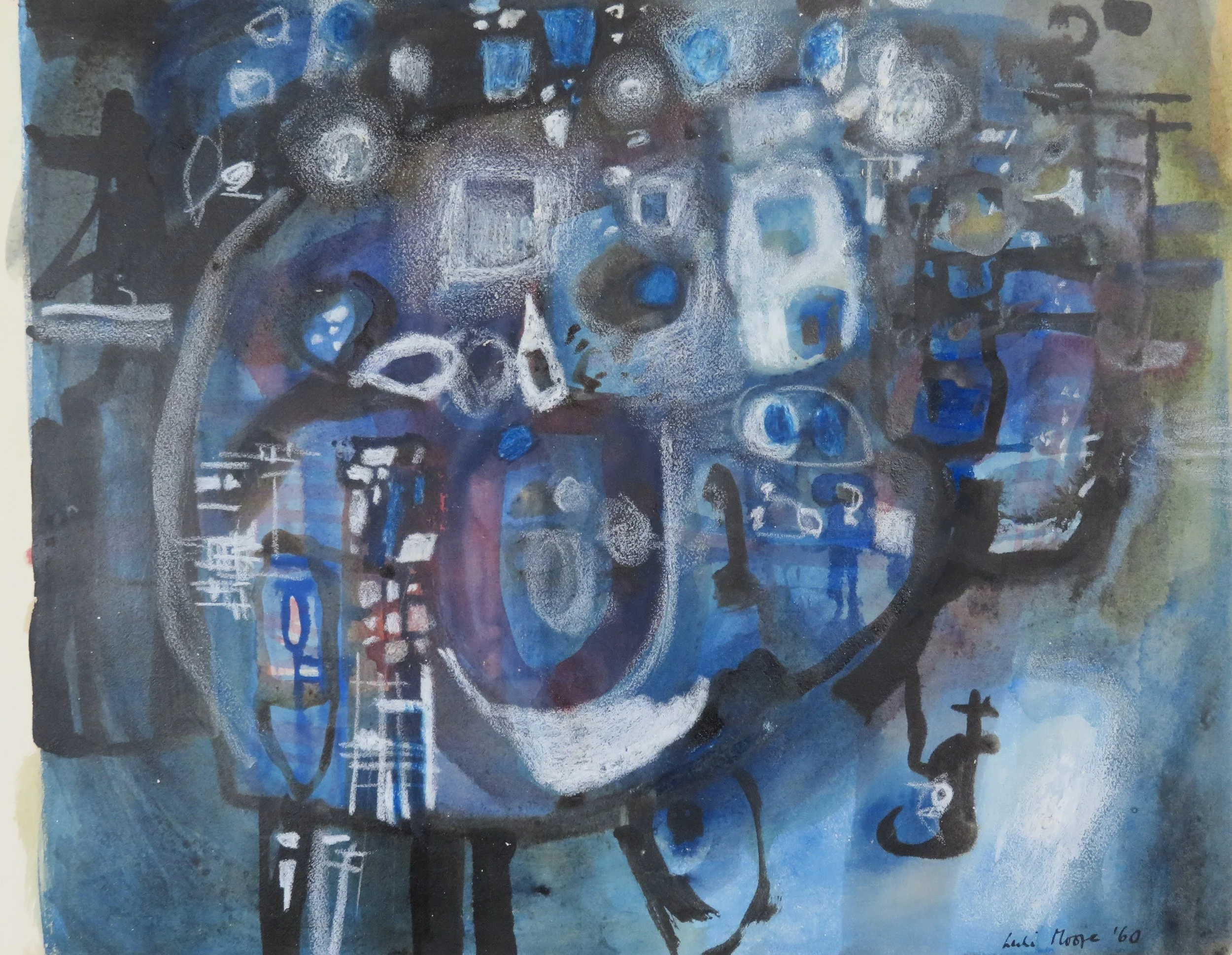 Leslie Moore was a Welsh neo-romantic artist who participated regularly in the National Eisteddfod and occasional gallery shows in Cardiff and Swansea. His work is represented in national collections in Cardiff and Newport, but seems to have shown mainly in Wales which is why, perhaps, he has been ‘seriously neglected’, says Hughes.